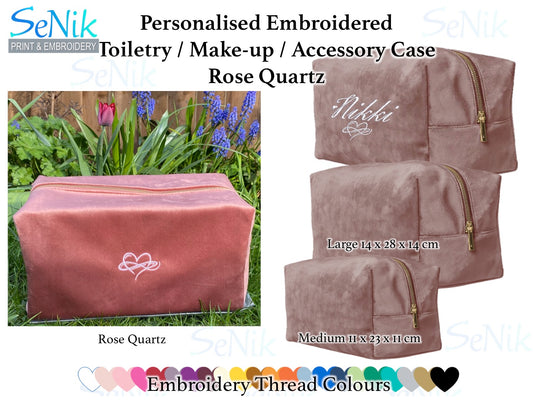 Embroidered personalised Velvet Make-up case, cosmetic case, toiletry bag, accessory case