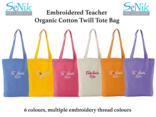 TEACHER Embroidered Organic Cotton Twill Tote Bag