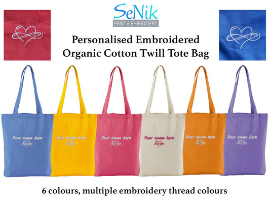 Embroidered Personalised Organic Cotton Twill Tote Bag