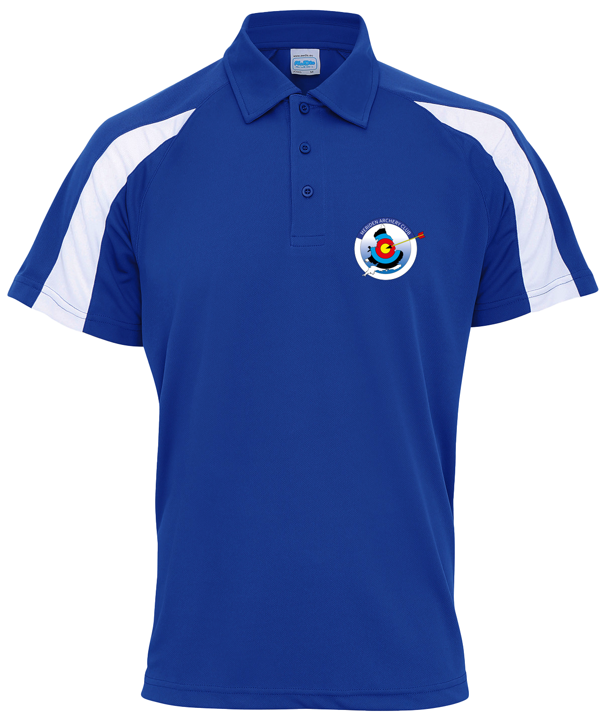 Sweat-wicking, collared neck, polyester training polo shirt.
